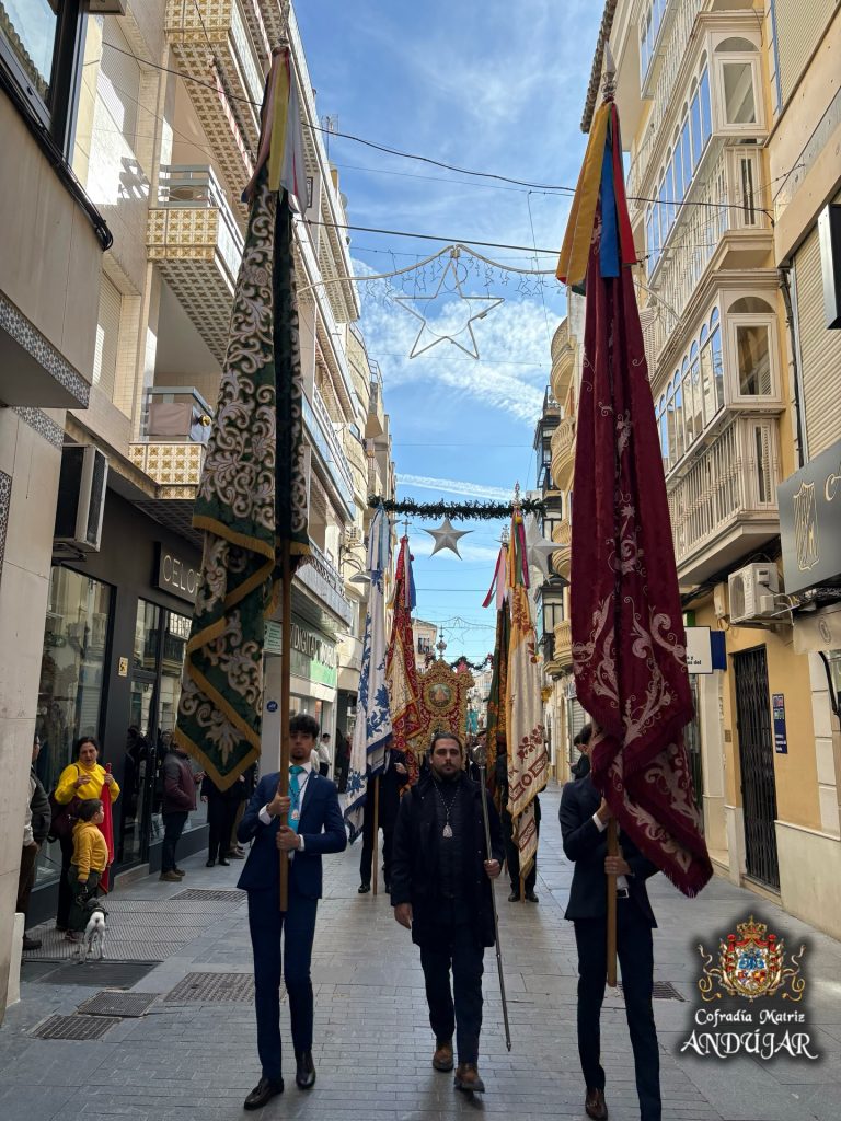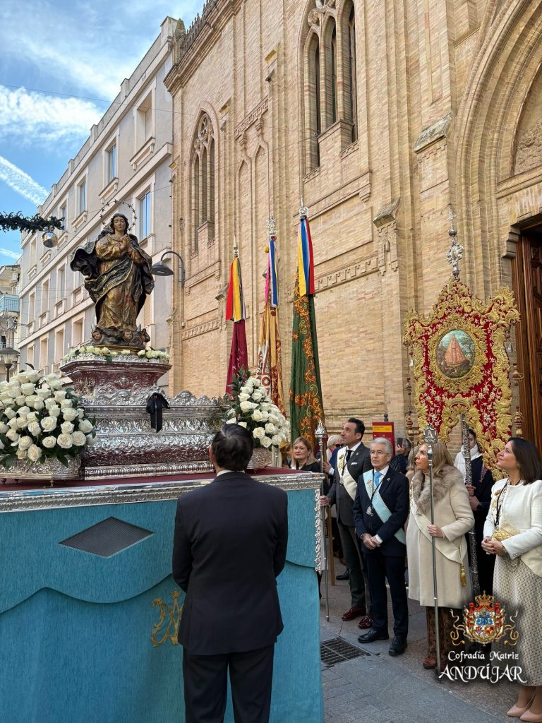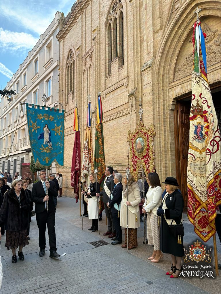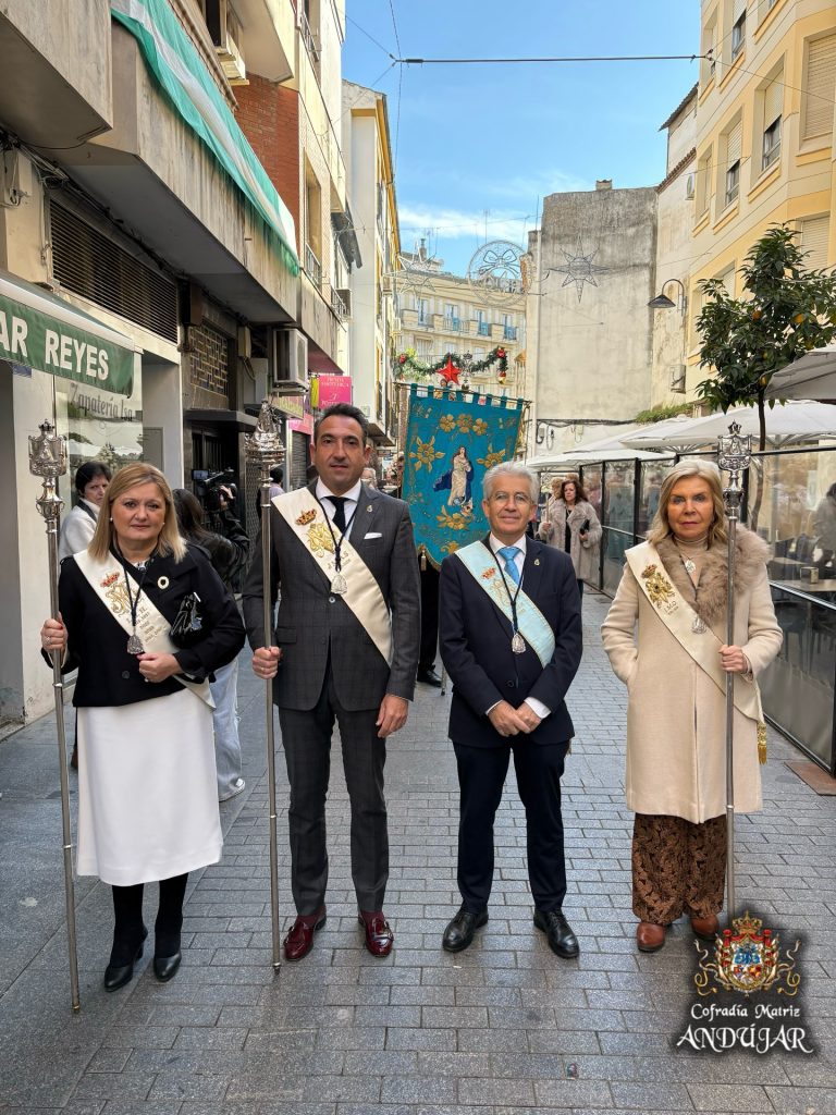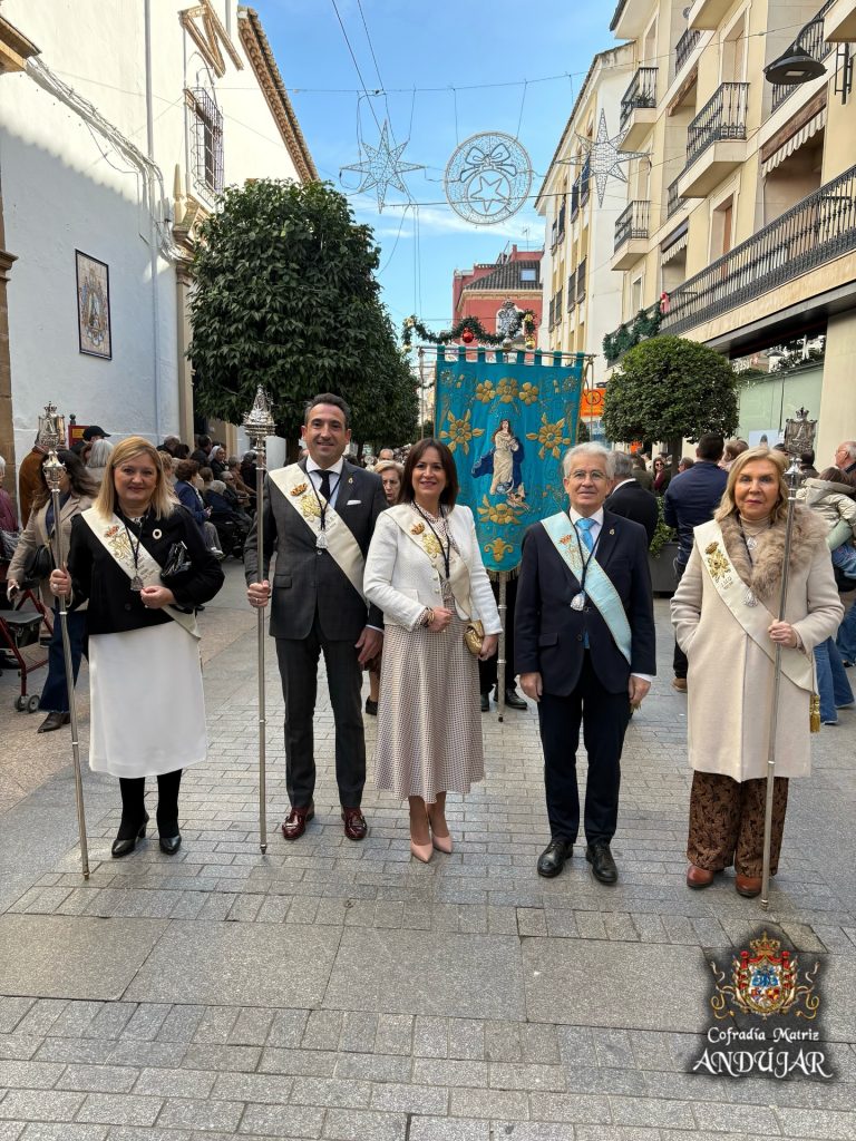 La Real e Ilustre Cofradía Matriz de la Santísima Virgen de la Cabeza ha acompañado en corporación a la Cofradía de la Inmaculada Concepción en la Solemne Procesión celebrada en la mañana de hoy por las calles de Andújar.