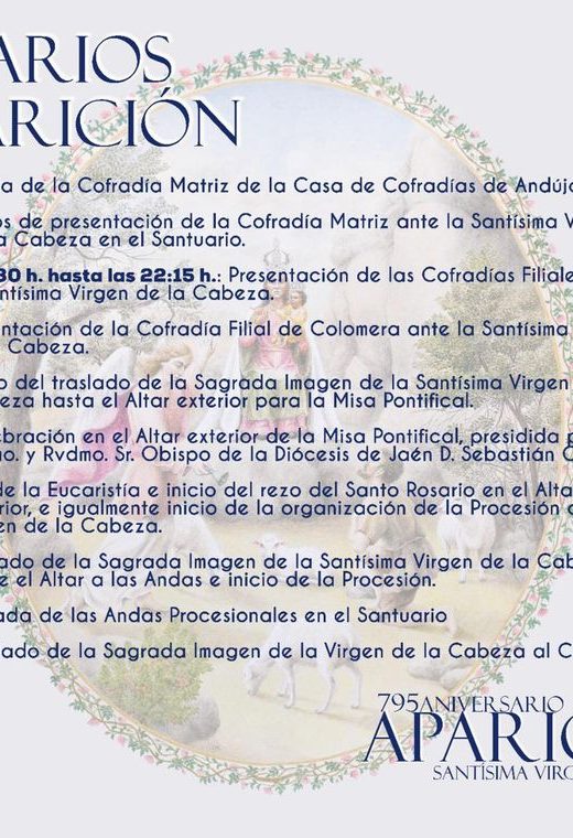 𝐇𝐨𝐫𝐚𝐫𝐢𝐨𝐬 𝐝𝐞 𝐥𝐨𝐬 𝐚𝐜𝐭𝐨𝐬 𝐜𝐨𝐧 𝐦𝐨𝐭𝐢𝐯𝐨 𝐝𝐞𝐥 𝟕𝟗𝟓 𝐚𝐧𝐢𝐯𝐞𝐫𝐬𝐚𝐫𝐢𝐨 𝐝𝐞 𝐥𝐚 𝐀𝐩𝐚𝐫𝐢𝐜𝐢𝐨́𝐧 𝐝𝐞 𝐥𝐚 𝐒𝐚𝐧𝐭𝐢́𝐬𝐢𝐦𝐚 𝐕𝐢𝐫𝐠𝐞𝐧 𝐝𝐞 𝐥𝐚 𝐂𝐚𝐛𝐞𝐳𝐚. 19´30 h.: Salida de …
