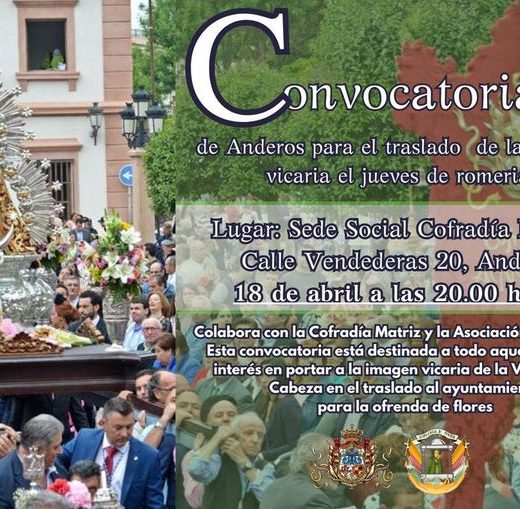 La Real e Ilustre Cofradía Matriz junto con la Asociación Mariana de Anderos convocan a cuantas personas quieran portar a la …