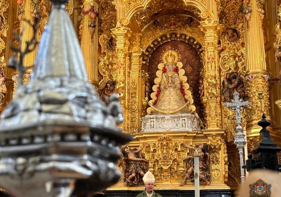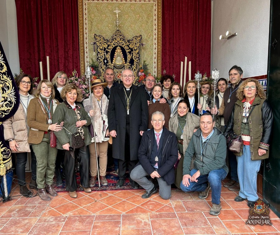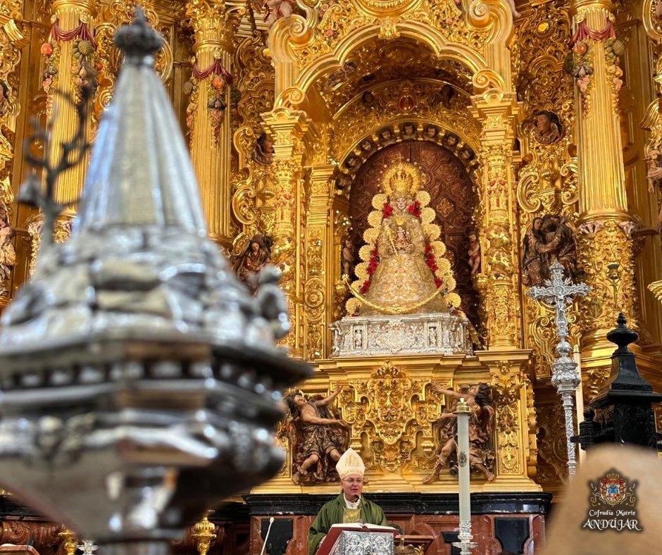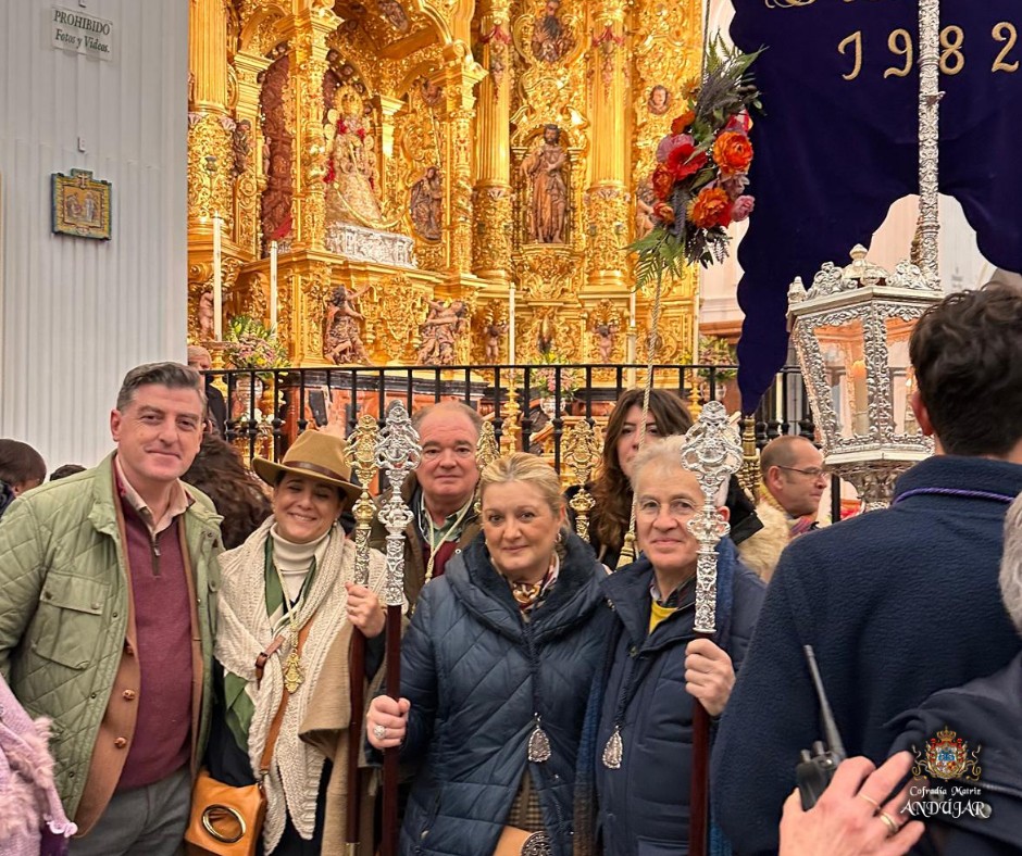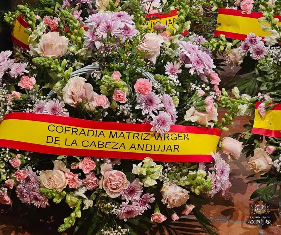 La Cofradรญa Matriz ofrendรณ a la Virgen de El Rocรญo una cesta de flores y, al finalizar la Eucaristรญa, se hizo entrega de nuestra medalla a la Hermandad de El Rocรญo en Jaรฉn, estando presente el presidente de la Hermandad Matriz de Almonte, con quiรฉn tuvimos un posterior encuentro.