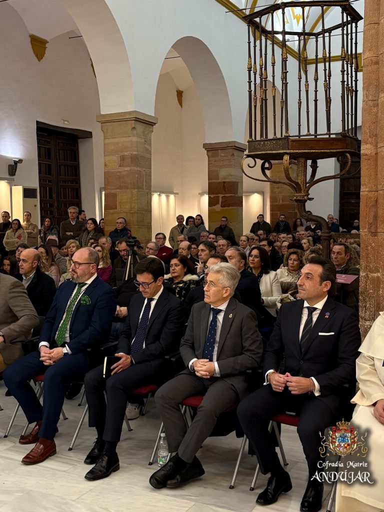 En representación de la Cofradía Matriz intervinieron nuestro presidente, Manuel José Gómez, el Hermano Mayor, José María Alcántara y nuestro Consiliario, el Padre Luis Miguel Alaminos, quienes destacaron la trascendencia espiritual, histórica y popular de la Romería de la Virgen de la Cabeza, así como el valor del cartel como expresión artística al servicio de la devoción. Ambos subrayaron el papel de la Cofradía Matriz como custodio de una tradición centenaria que forma parte esencial de la identidad de Andújar y de todos los devotos de la Morenita.