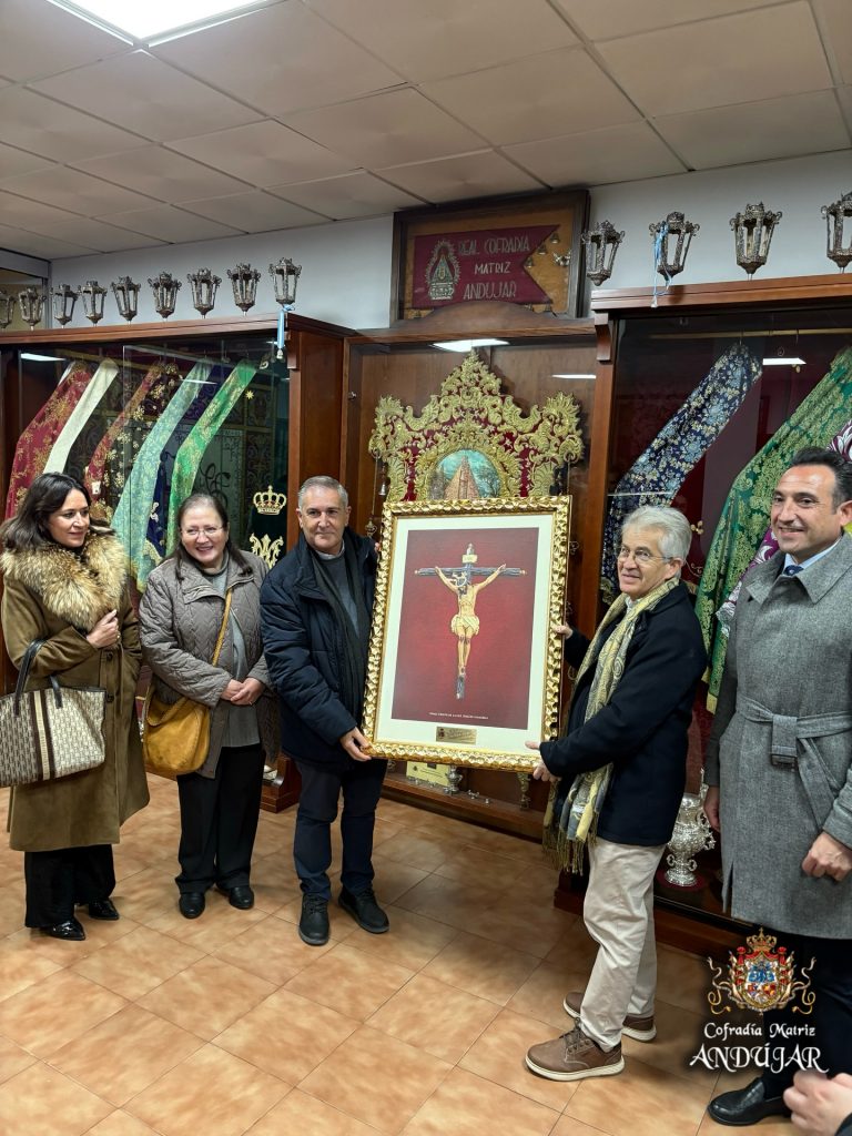 Queremos expresar nuestro más sincero agradecimiento a la Hermandad del Santísimo Cristo de la Luz de Dalías (Almería) por la entrega de un cuadro con la imagen de su Titular, que, sin duda, quedará expuesto para el recuerdo de esta entrañable y fraterna visita.