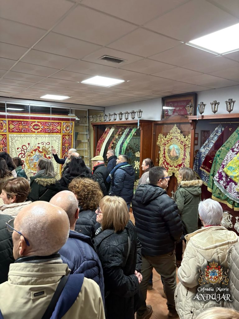 La visita ha sido acogida por nuestro Presidente, D. Manuel José Gómez, varios miembros de la Junta de Gobierno y nuestros Hermanos Mayores, D. José María Alcántara y D.ª Teresa Flores, compartiendo juntos una jornada de auténtica fraternidad cofrade.